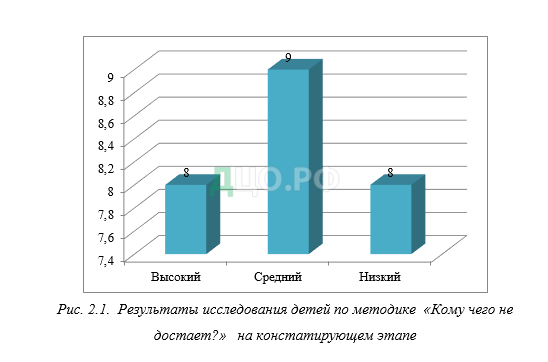 На рисунке 2.1. представим результаты исследования детей по методике «Кому чего не достает?» на констатирующем этапе.