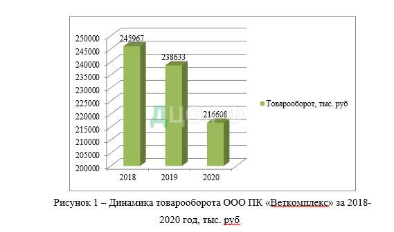 Рисунок 1 демонстрирует динамику оборота товаров рассматриваемого нами предприятия — рассмотрим её с целью проведения анализа ФХД предприятия ООО ПК «Веткомплекс».