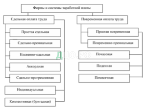 Форма оплаты труда напрямую подчиняется объекту учета труда, который подлежит оплате. В роли объекта учета иногда выступает рабочее время, или же может выступать сумма выполненной работы. Выделяют две главные формы заработной платы: повременная и сдельная. Исходя из двух данных форм сформированы и обозначены разнообразные системы заработной платы. Системы представлены на рисунке 1.