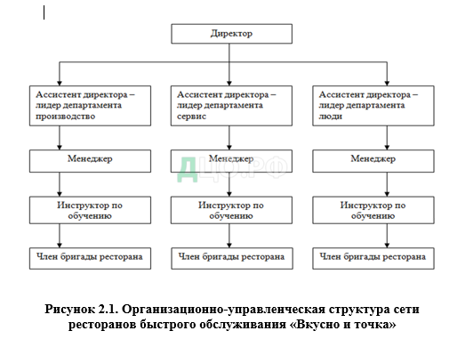 Каждый ресторан сети «Вкусно и Точка» имеет типовую линейную организационно-управленческую структуру, которая представлена на схеме (рисунок 2.1).