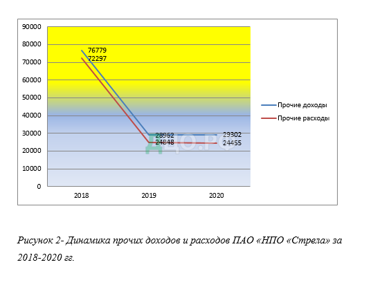 На рисунке 2 представлена изменение величина прочих расходов и прочих доходов 2018-2020гг.