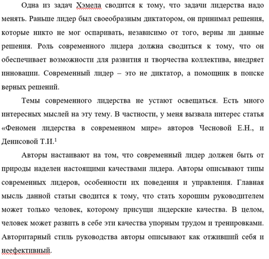 Темы современного лидерства не устают освещаться. Есть много интересных мыслей на эту тему. В частности, у меня вызвала интерес статья «Феномен лидерства в современном мире» авторов Чесновой Е.Н., и Денисовой Т.И.[1]