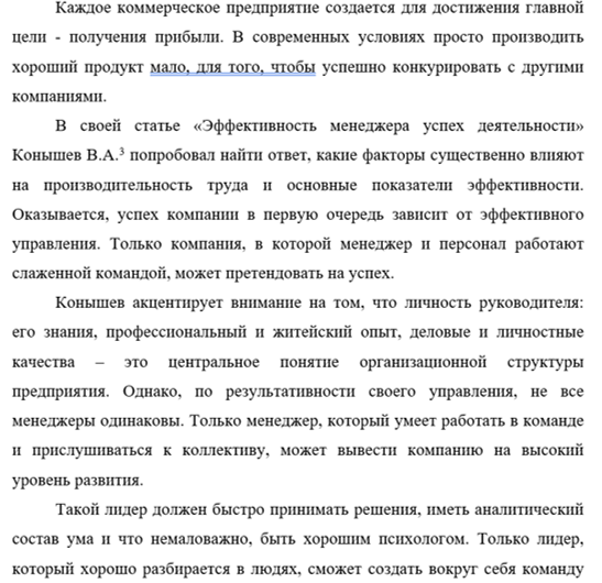Конышев акцентирует внимание на том, что личность руководителя: его знания, профессиональный и житейский опыт, деловые и личностные качества – это центральное понятие организационной структуры предприятия. Однако, по результативности своего управления, не все менеджеры одинаковы. Только менеджер, который умеет работать в команде и прислушиваться к коллективу, может вывести компанию на высокий уровень развития.