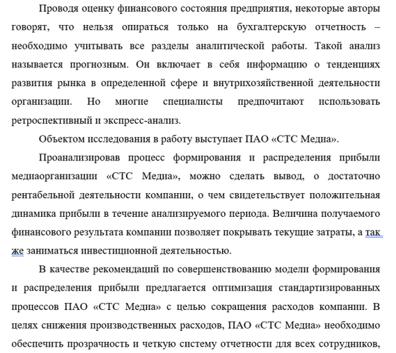 Практическая значимость работы состоит в разработке рекомендаций по совершенствованию системы формирования и распределению прибыли в медиаорганизации ПАО «СТС Медиа».