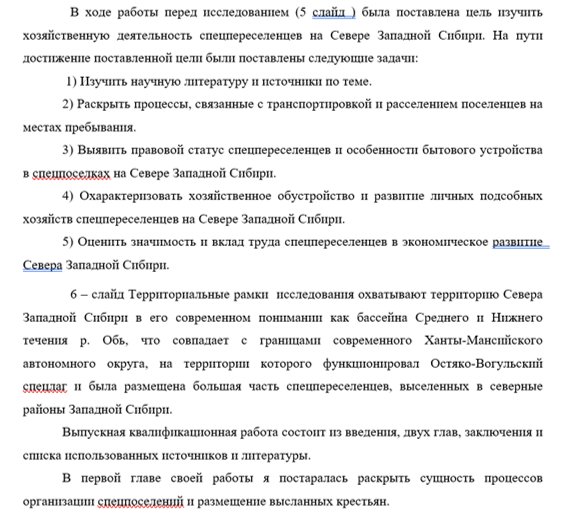 В ходе работы перед исследованием (5 слайд ) была поставлена цель изучить хозяйственную деятельность спецпереселенцев на Севере Западной Сибири. На пути достижение поставленной цели были поставлены следующие задачи: