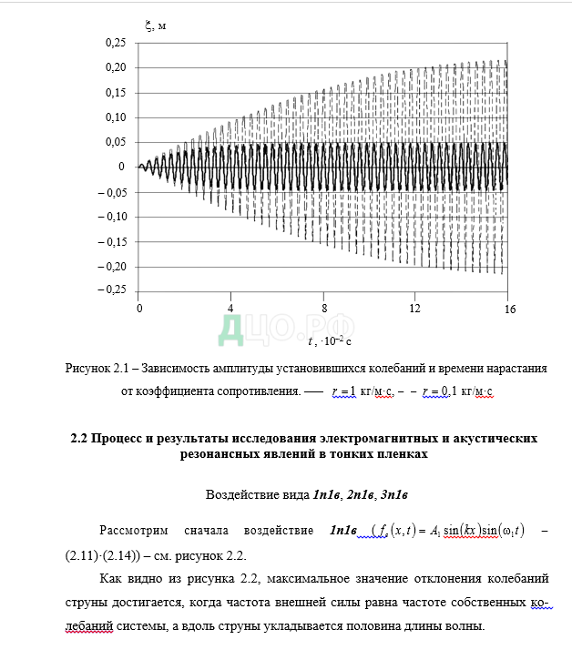 Также предложенный способ возбуждения акустических колебаний может применяться не только в тонких пленках, но и в любых других колебательных сис-темах, подверженных воздействию электромагнитных волн.