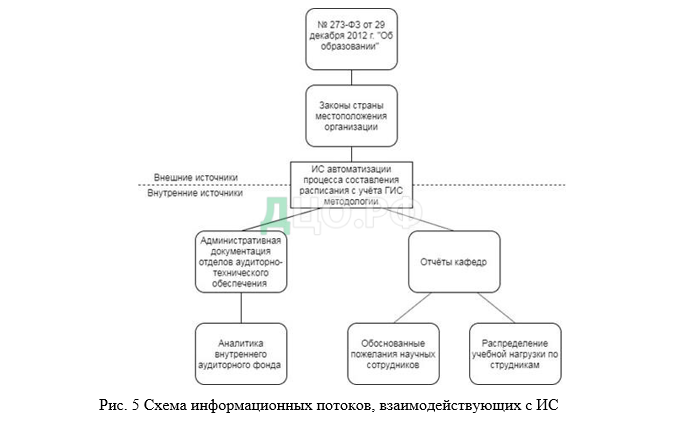 Для обеспечения оптимальности составляемого расписания необходимо формирование целевой функции для ее дальнейшего применения в алгоритмах оптимизации. Данная функция должна основываться на входящих, в проектируемую информационную систему, потоках информации, а также типе применяемого алгоритма оптимизации. Схема, взаимодействующих с информационной системой потоков информации представлена на рисунке 5.