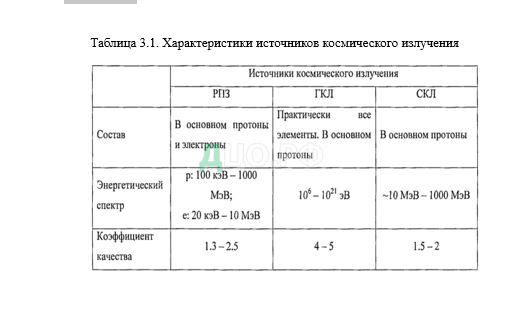 Характеристики источников космической радиации систематизированы в таблице 3.1.