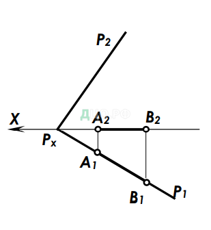 Способом совмещения плоскости с одной из плоскостей проекций построить проекции равностороннего треугольника АВС, принадлежащего плоскости Р, по заданной его стороне АВ.