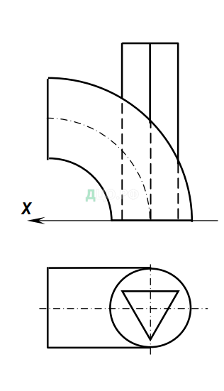 Построить линию пересечения четверти тора с вертикальной трехгранной призмой.