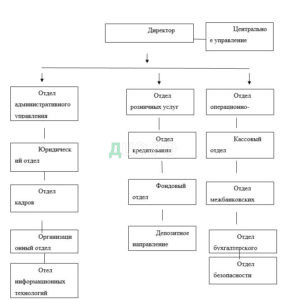 В непосредственном подчинении руководителя офиса находится заместитель руководителя, которому, в свою очередь подчиняются менеджеры по продажам, консультанты по банковским продуктам, ведущий специалист по обслуживанию корпоративных клиентов, клиентский менеджер, кредитный аналитик и кредитный инспектор, старший менеджер и менеджеры по обслуживанию.