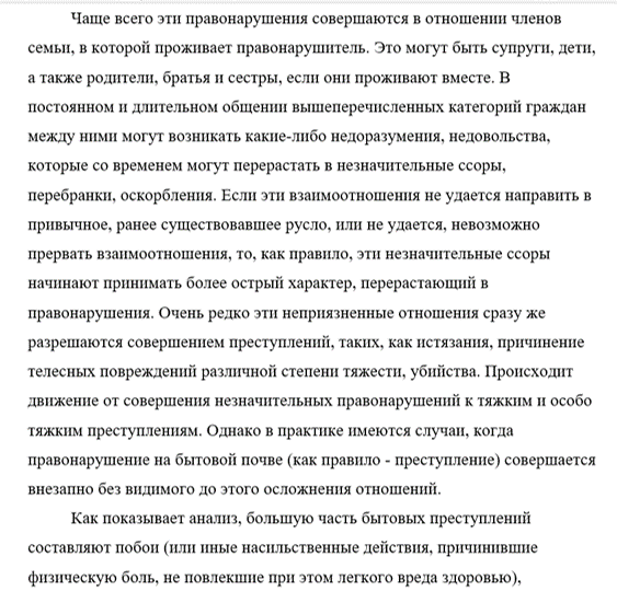 Актуальность темы курсовой работы. Проводившиеся в последние годы исследования свидетельствуют о том, что значительное число преступлений совершается на бытовой почве в результате внутрисемейных неурядиц. Статистика показывает, что за последние годы примерно две трети умышленных убийств и случаев причинений тяжкого вреда здоровью обусловлены семейно-бытовыми мотивами. Насилие в той или иной форме наблюдается почти в каждой четвертой семье.
