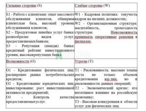 Анализ параметров матрицы SWOT-анализа ПАО «Промсвязьбанк» представлена в таблице 1.