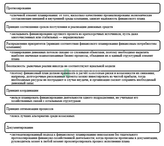 Для достижения устойчивого успеха планирование любого вида деятельности компании должно носить системный характер, то есть подчиняться определённым правилам. Всего в научных и исследовательских работах по бизнесу можно найти до трёх десятков принципов финансового планирования, сформулированных разными авторами. Рассмотрим самые важные из них на рисунке 2. [23, с. 127].