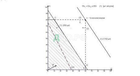 Аналогично видим, что производительность первой технологической линии — это правая часть связывающего ограничения (2) (60 шт/сутки). Со-гласно этому ограничению в точке D данная линия производит 60 радио-приемников первой модели в сутки.