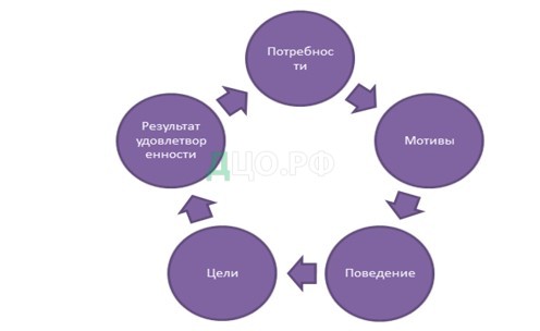 Общий план процесса мотивации, которая отражает цикличность и взаимосвязь мотивов, целей и потребностей представлена на рисунке 2.