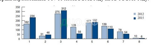 Имеют образование: 1 – высшее; 2 – неполное высшее профессиональное; 3 – среднее профессиональное по программам подготовки специалистов среднего звена; 4 – среднее профессиональное по программам подготовки квалифицированных рабочих, служащих; 5 – среднее общее; 6 – основное общее; 7 – начальное общее; 8 – не имеют начального общего образования .