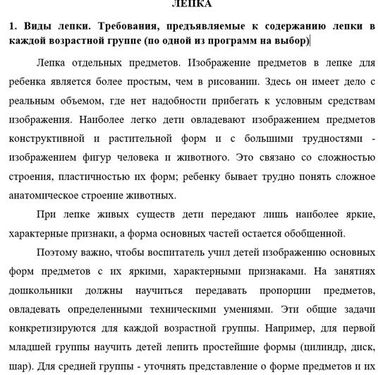 Виды лепки. Требования, предъявляемые к содержанию лепки в каждой возрастной группе (по одной из программ на выбор)