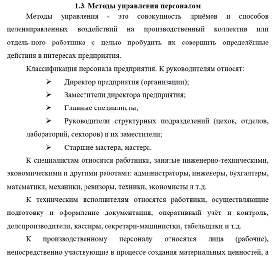 - рассмотрение методов управления персоналом;