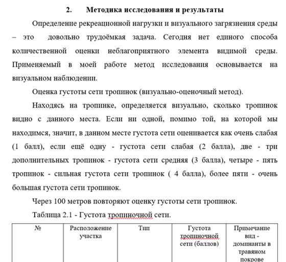 Каждая природная экосистема имеет предел допустимой рекреационной нагрузки, при превышении которого наступает необратимая деградация экосистемы. Интенсивность рекреационного влияния зависит от вида отдыха и количества отдыхающих.