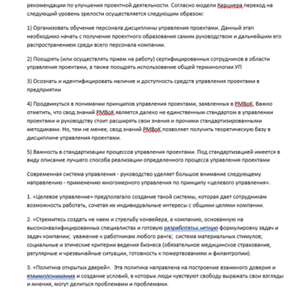 - Должна использоваться постоянно действующая и постоянно обновляемая образовательная программа, что особенно важно для технического бизнеса, где скорость прогресса высока;