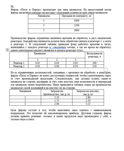 Руководство рассчитало, что в следующем месяце фирма будет располагать следующими возможностями обеспечения производства трудозатратами: 800 чел-дней в подразделении 1, 600 — в подразделении 2 и 2000 — в подразделении 3.