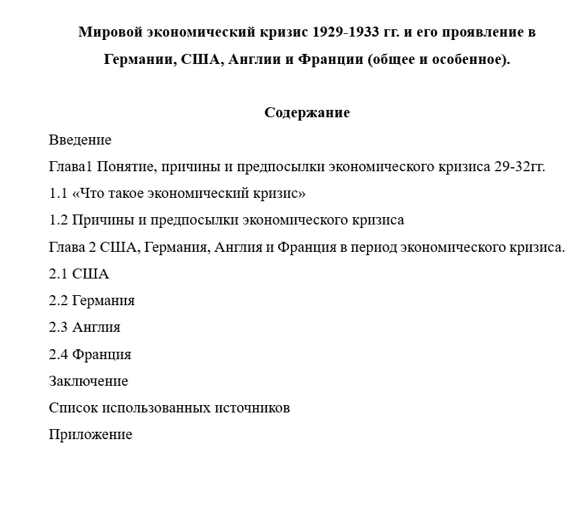 Тема: Мировой экономический кризис 1929-1933 гг. и его проявление в Германии, США, Англии и Франции