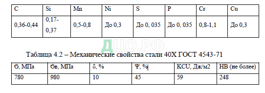 Таблица 4.1 – Химический состав стали 40Х ГОСТ 4543-71, %