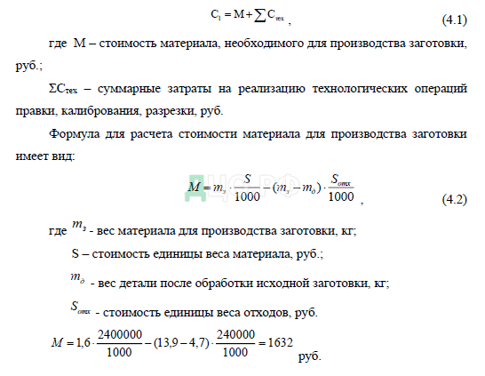 Формула для расчета себестоимости заготовки при использовании метода