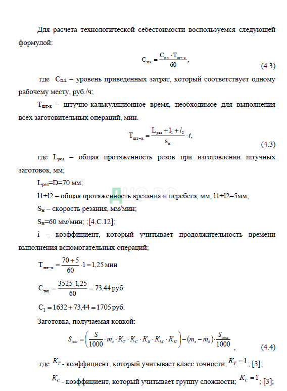 получения заготовки необходимо осуществить расчет себестоимости получения