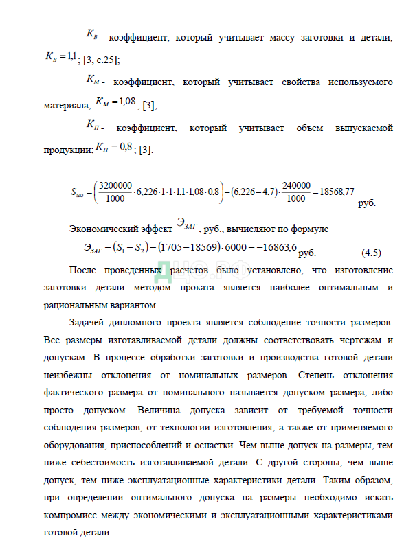 Таким образом, при выборе заготовок необходимо стремиться к назначению оптимальных припусков, обеспечивающих выполнение механической обработки с удовлетворением требований к точности и чистоте обрабатываемых поверхностей при наименьшей себестоимости детали.