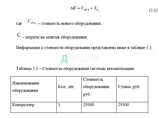 5.1 Расчет капитальных вложений