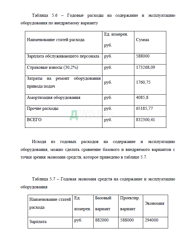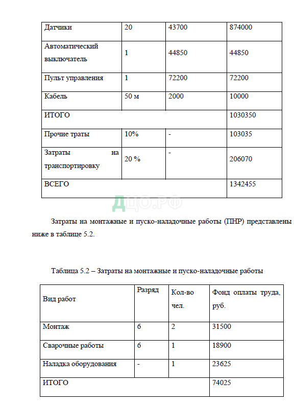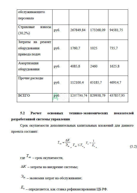5. Технико-экономический раздел
