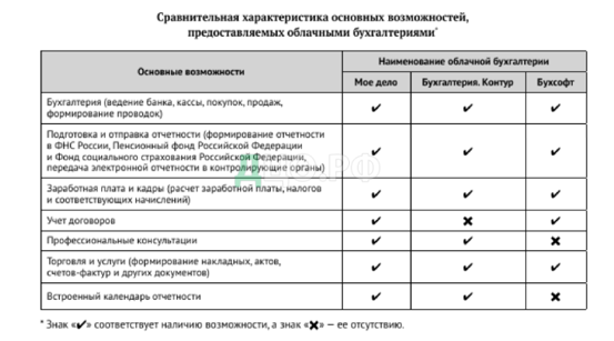 Рисунок 26 – Сравнительная характеристика облачных бухгалтерий
