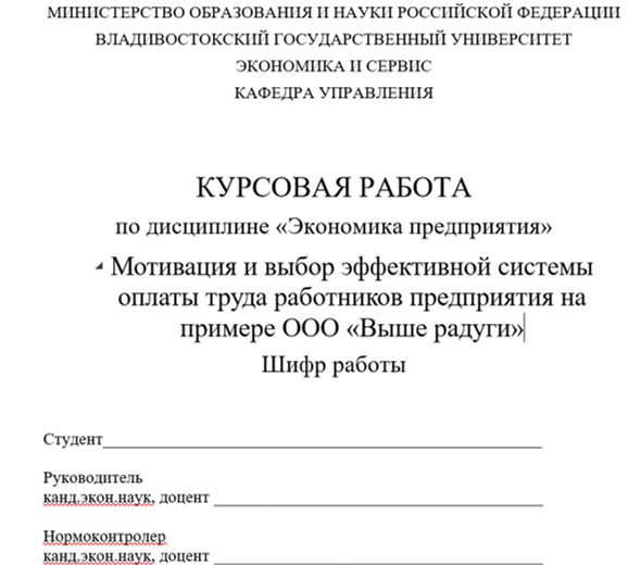 Тема: Мотивация и выбор эффективной системы оплаты труда работников предприятия на примере ООО Выше радуги