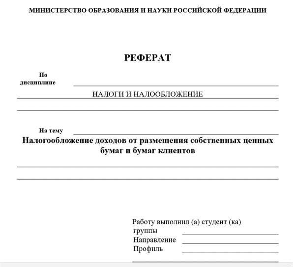 Таким образом, этим и определяется актуальность выбранной темы реферата «Налогообложение доходов от размещения собственных ценных бумаг и бумаг клиентов».