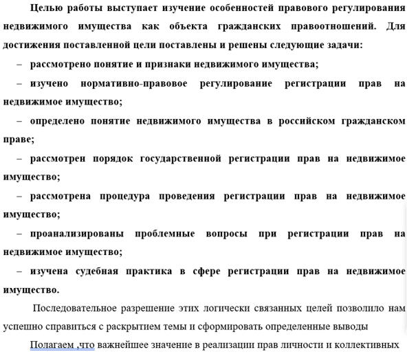 Целью работы выступает изучение особенностей правового регулирования недвижимого имущества как объекта гражданских правоотношений. Для достижения поставленной цели поставлены и решены следующие задачи: