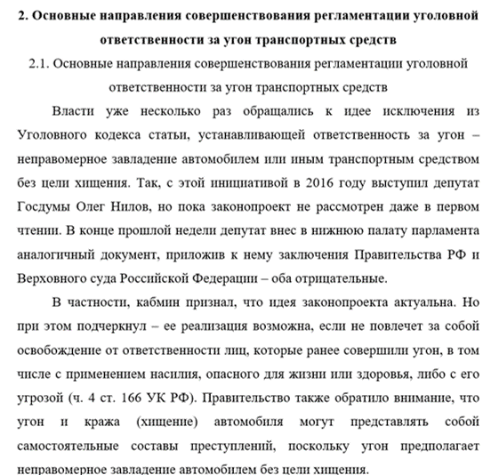 - изучить основные направления совершенствования регламентации уголовной ответственности за угон транспортных средств.