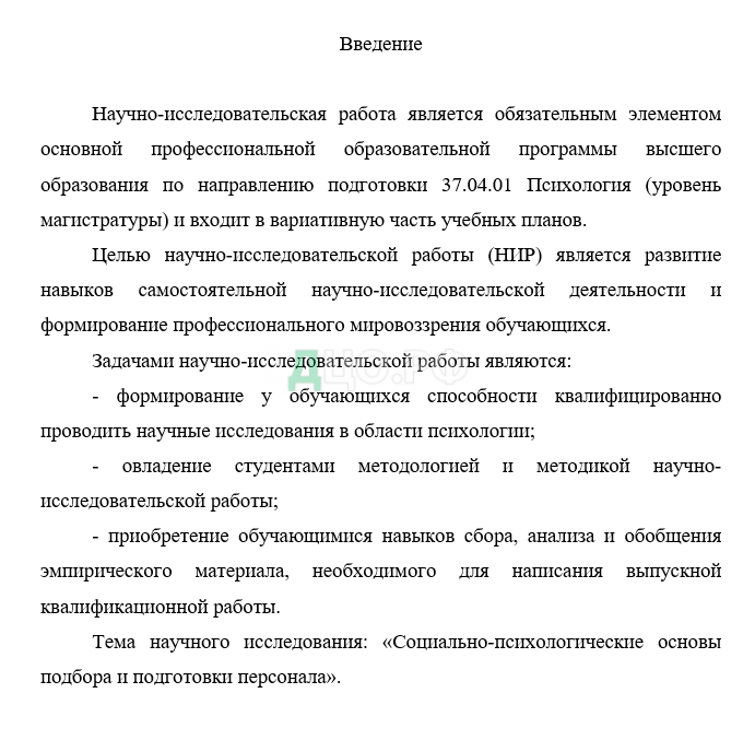 Введение отчета по научно-исследовательской работе