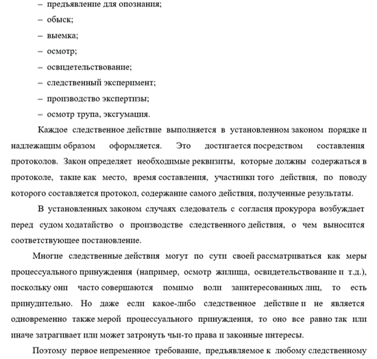 Поэтому непременное требование, к следственному действию, в том, чтобы оно только при к тому оснований. Обоснованность следственного предполагает, в частности, любое принуждение, ограничение либо чьих-либо прав и интересов осуществлялись лишь в меру их необходимости, т.е. были условиями конкретной ситуации.