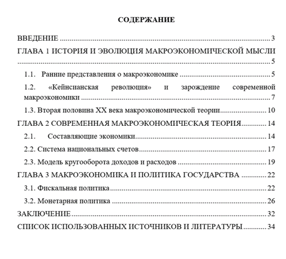 Структура работы представлена введением, тремя главами, заключением и списком использованных источников. Первая глава посвящена исследованию истории и эволюции макроэкономической мысли. Вторая глава направлена на изучение основных составляющих современной макроэкономики. Третья глава представлена определением основных направлений политики государства в рамках макроэкономического исследования.