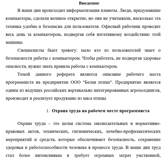 Темой данного реферата является описание рабочего места программиста на предприятии ООО «Белая птица». Предприятие является одним из ведущих российских вертикально интегрированных агрохолдингов, производит и реализует продукцию из мяса птицы.