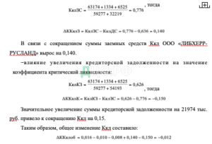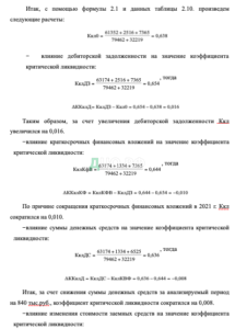 Итак, коэффициент критической ликвидности за 2020-2021 гг. сократился на 1% за счет значительного увеличения кредиторской задолженности.