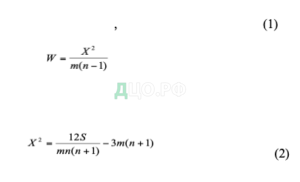 Произведем оценку степени согласованности мнений экспертов. Данная оценка свидетельствует о значимости данных показателей и производится путем вычисления коэффициента конкордации (согласования) по формуле (1) и (2):