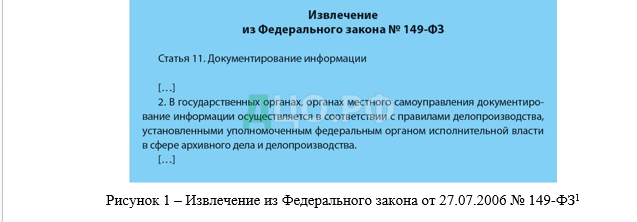 Правила делопроизводства 2019 разработаны в соответствии с Федеральным законом от 27.07.2006 № 149-ФЗ «Об информации, информационных технологиях и о защите информации» (см. рисунок 1).