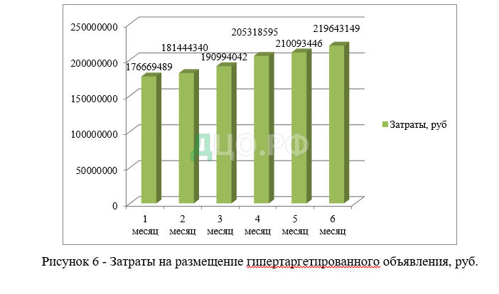 На рисунке 5 видно, что прогнозируется устойчивая тенденция к росту по количеству переходов на сайт в совокупности по соцсетям. Из этого, можно определить величину трат на размещение гипертаргетированного объявления в социальной сети «ВКонтакте»» (см. рисунок 6)