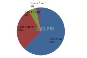 Предпочтения по периодичности обучения у сотрудников распределилось следующим образом: 30% опрошенных, считают необходимым проходить обучение 1 раз в квартал, 62% — 1 раз в год, 5% -1 раз в 3 года и 3% — 1 раз в 5 лет (рисунок 7).