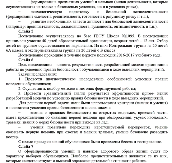 Цель исследования – выявить результативность разработанной модели организации работы по усвоению правил безопасности обучающимися в ходе выездных мероприятий.