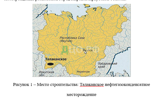 Район строительства: Талаканское нефтегазоконденсатное месторождение, находящееся на юго-западе Республики Якутия.