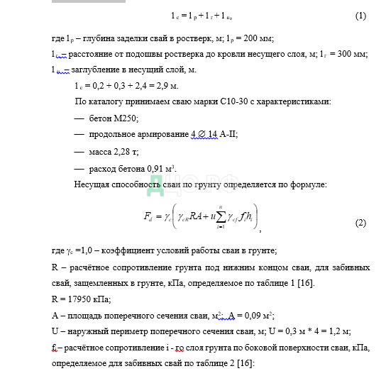 Окончательно показатель длины сваи устанавливается с применением предложенной формулы. При этом принимаются во внимание приведенные выше концепции.